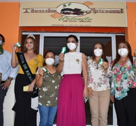 Luego de haber inaugurado la primera Tienda Artesanal, la Alcaldesa Amada Zambrano, junto a las autoridades del Cantón y Reina de la...