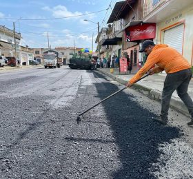 Obra de reasfaltado avanza en diferentes calles de la zona urbana de la parroquia Ricaurte, actualmente se realiza los trabajos en la calle...