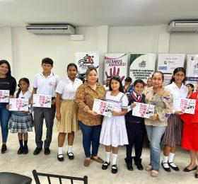 Niñas, niños y adolescentes, estudiantes de distintas instituciones educativas bajo el liderazgo del Consejo de Protección de Derechos...